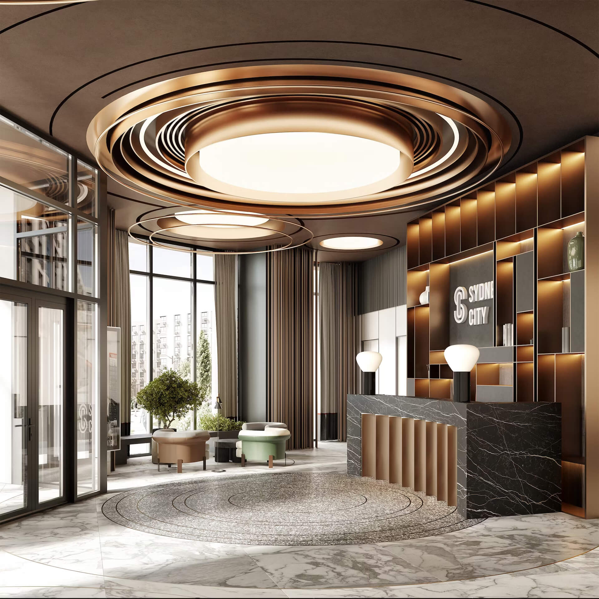Лобби жилого комплекса «Сидней Сити» — воплощение премиального комфорта и стиля. С первых минут пребывания здесь вы погружаетесь в атмосферу элегантности, уюта и внимания к деталям.