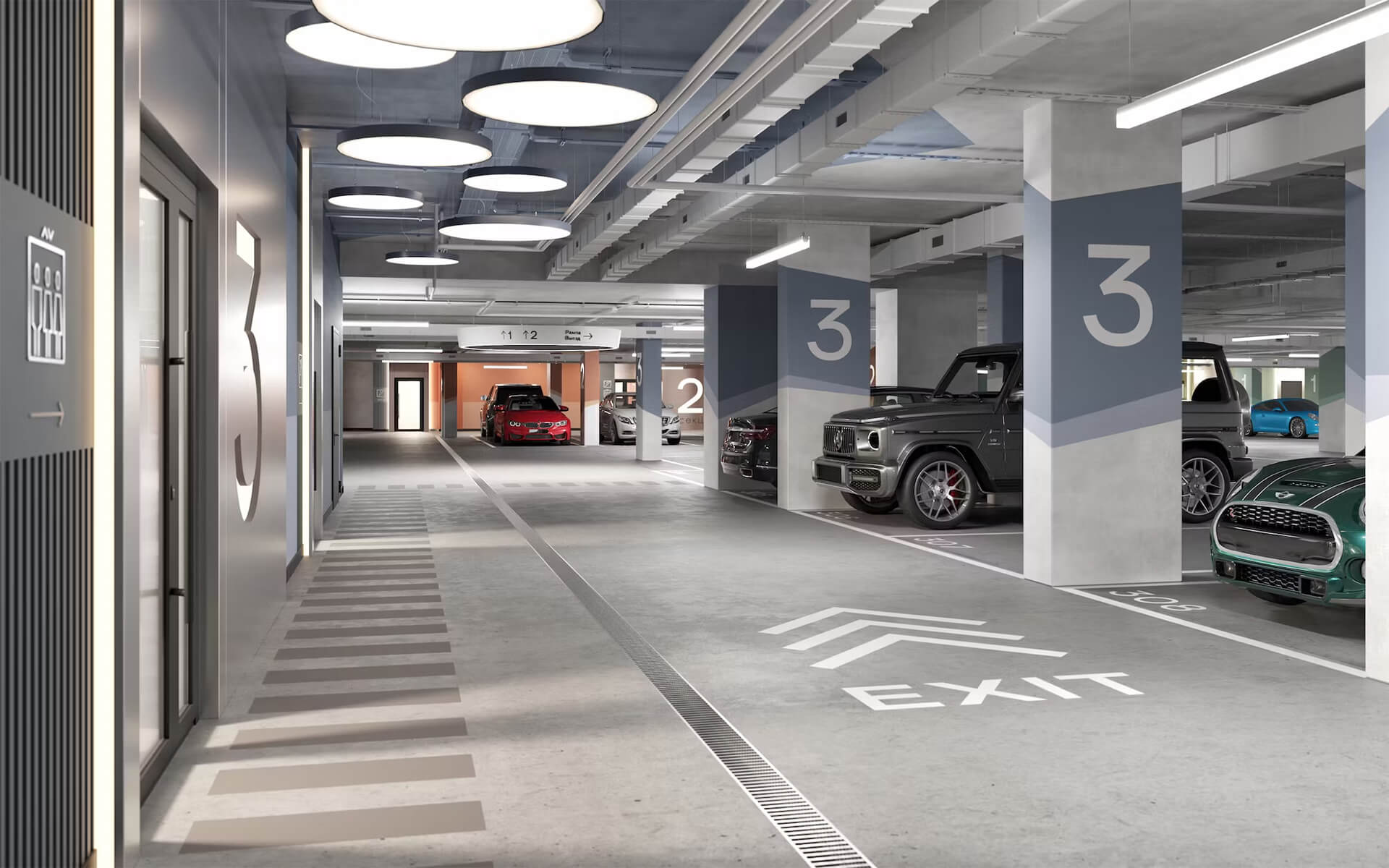 Особое внимание уделено системам вентиляции и освещения, которые создают комфортные условия для пребывания в паркинге в любое время суток. Для владельцев автомобилей премиум-класса предусмотрены VIP-зоны с дополнительными удобствами, включая сервисные боксы и мойку.